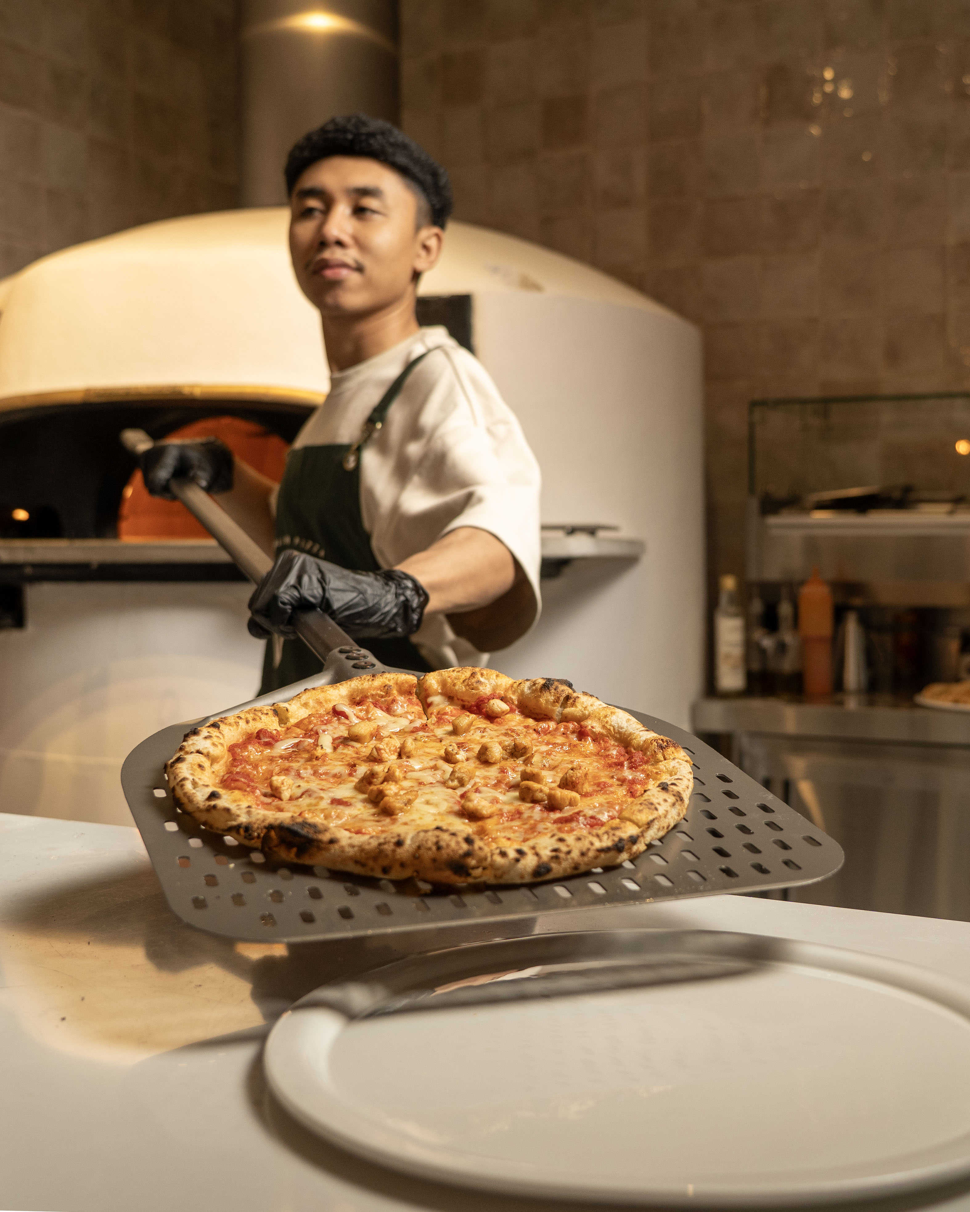 المارجريتا الكلاسيكية مع شرائح الزيتون والفلفل الرومي وجبنة البارميزان والموازريلا الطبيعية