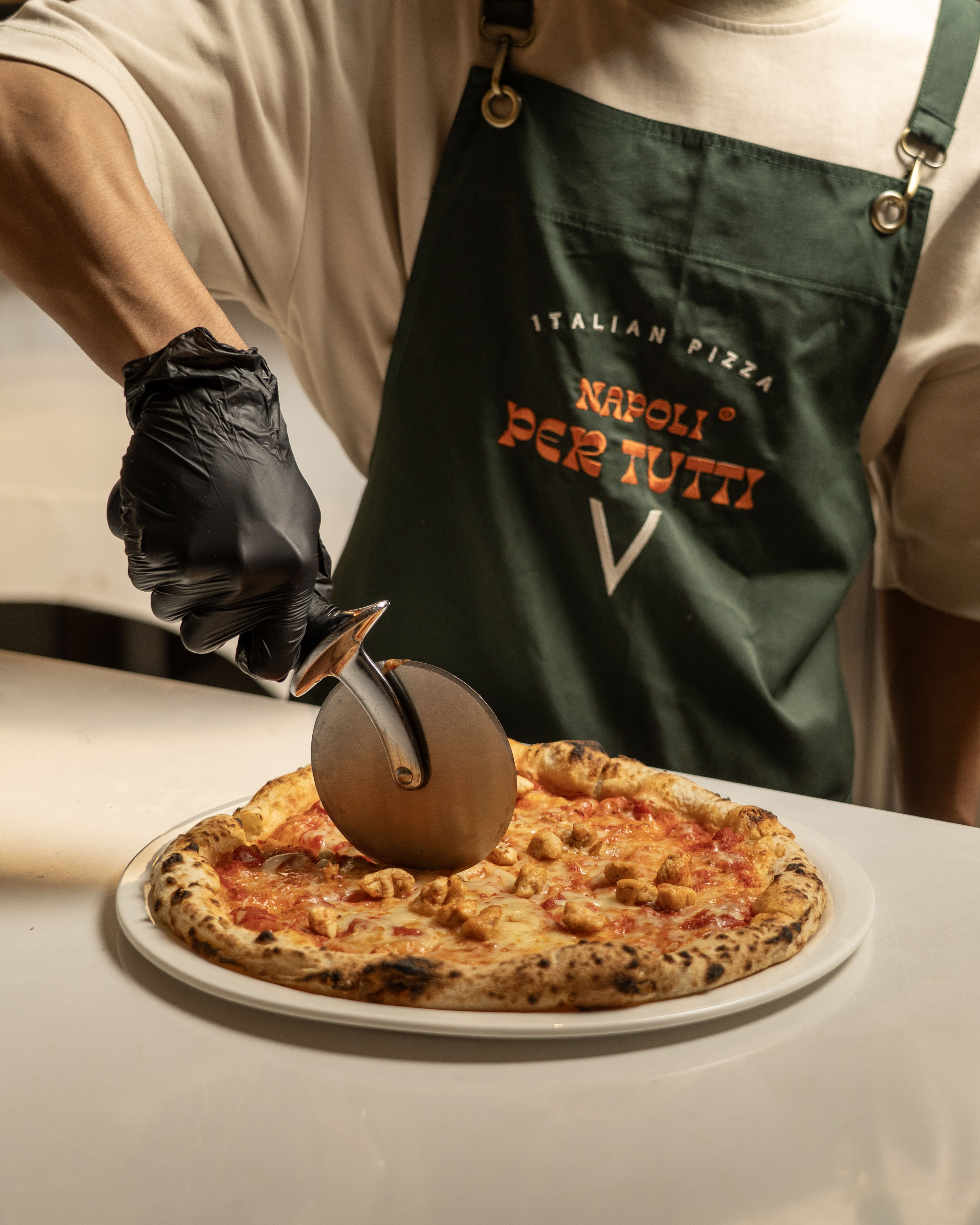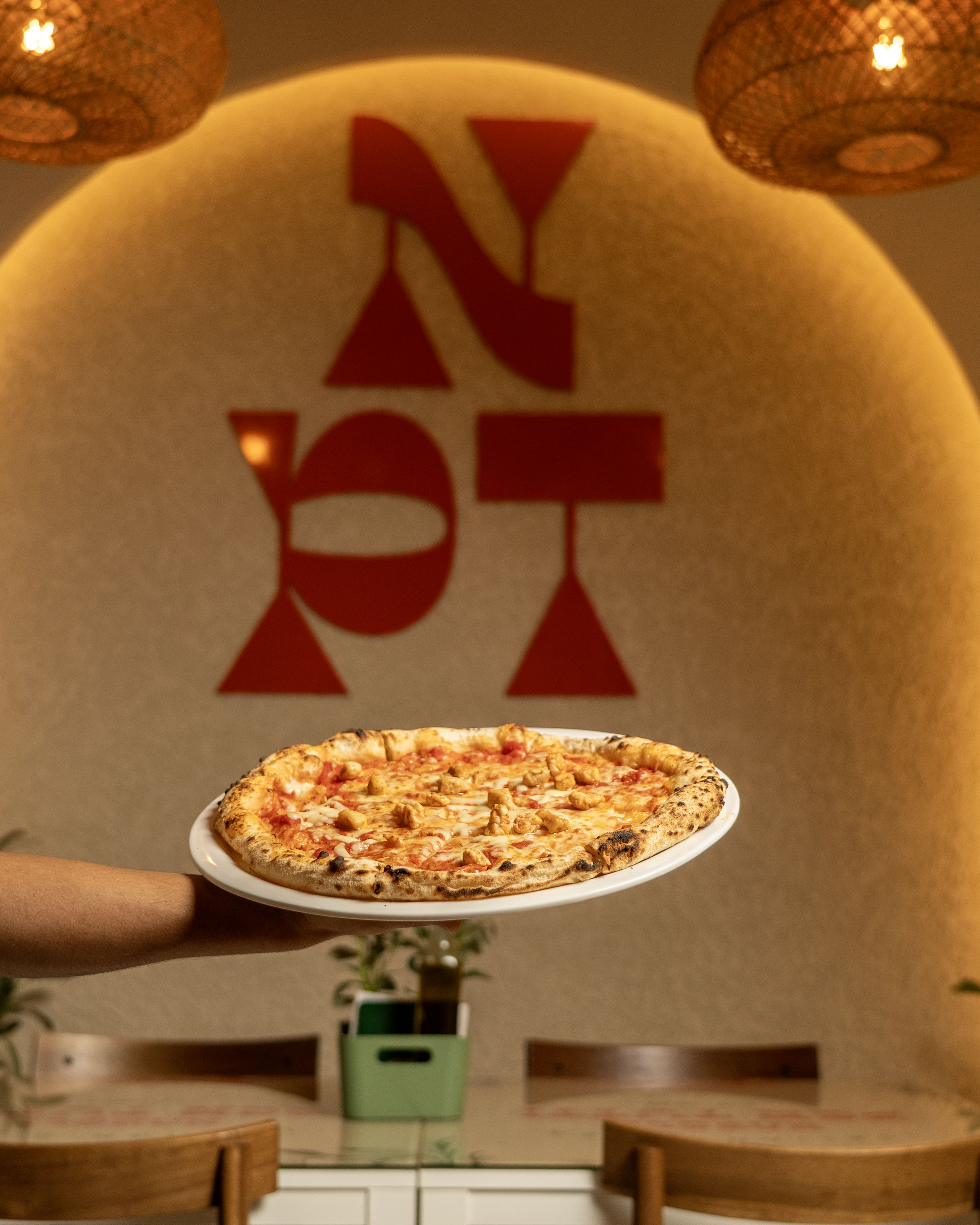 بيتزا نابولي بصوص البيستو الخاص بشيف بيرتوتي ، جبنة البارميزان ، الموازيرلا الطبيعية