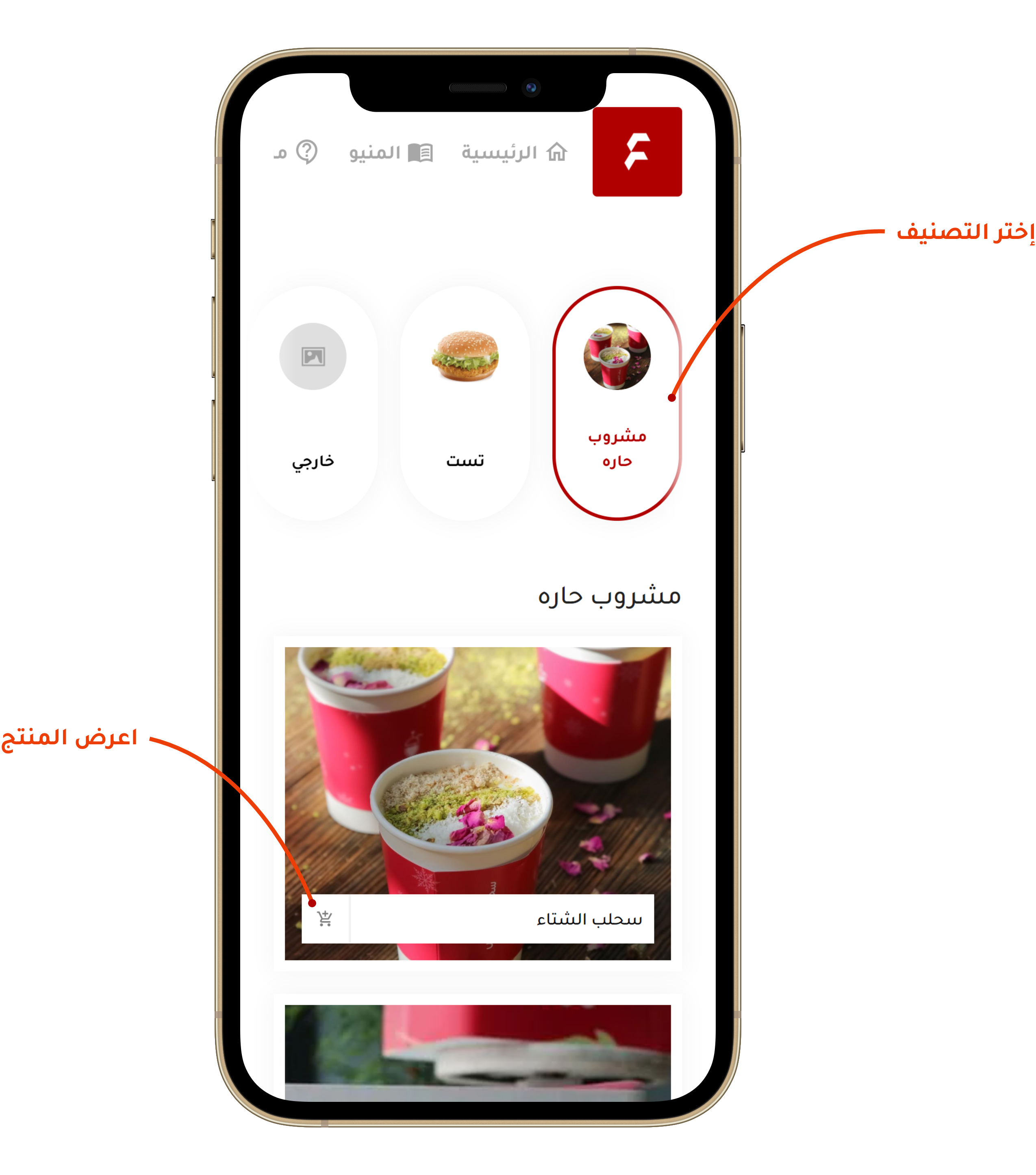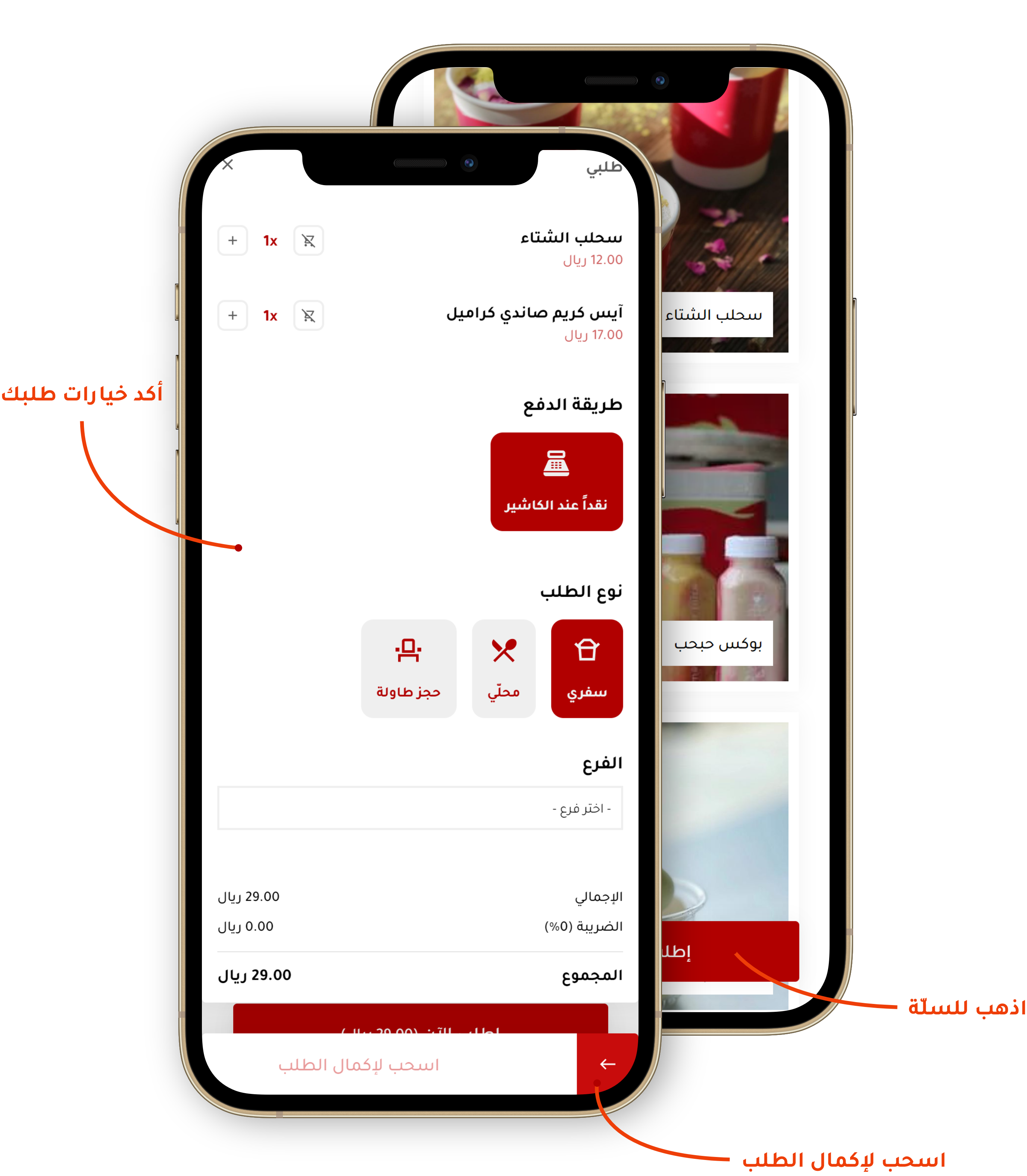 قم بإختيار طلبك بكل سهولة من قائمة الطعام